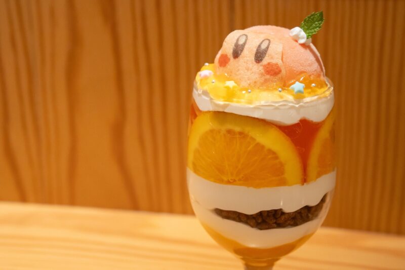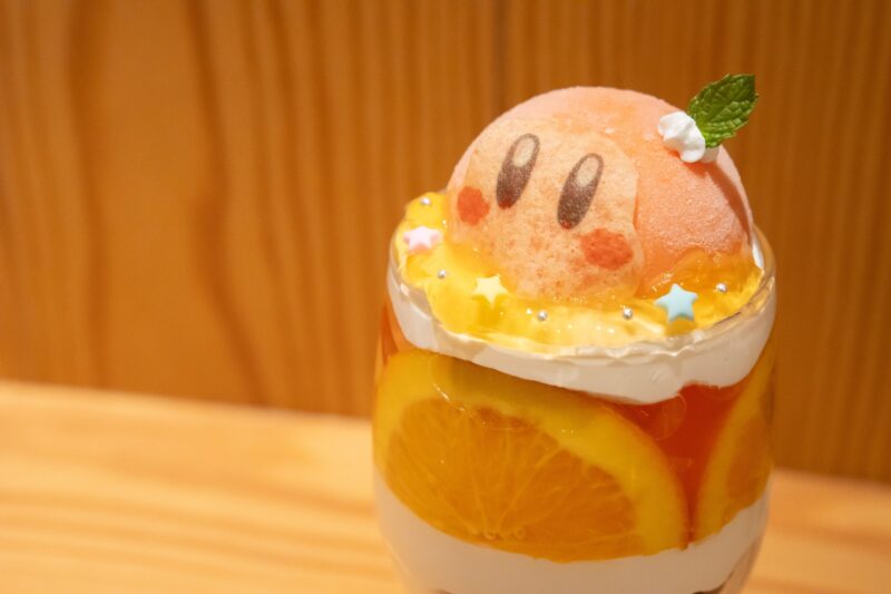カービィカフェ Summer 2025の期間限定メニューから「ワドワド☆おひさまオレンジパフェ」をご紹介しました。