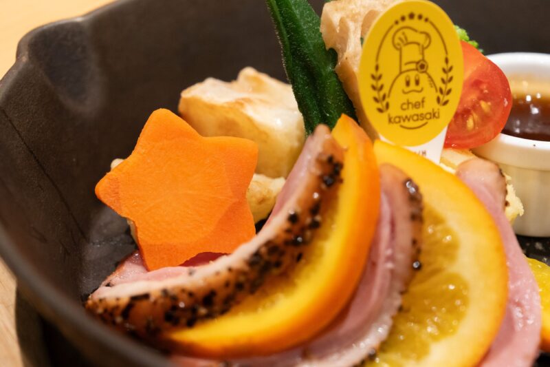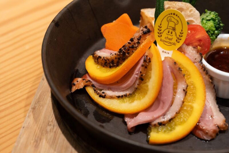 カービィカフェ Summer 2025の期間限定メニューから「コックカワサキとくせい 鴨のパストラミ~オレンジオーシャン風~」をご紹介しました。