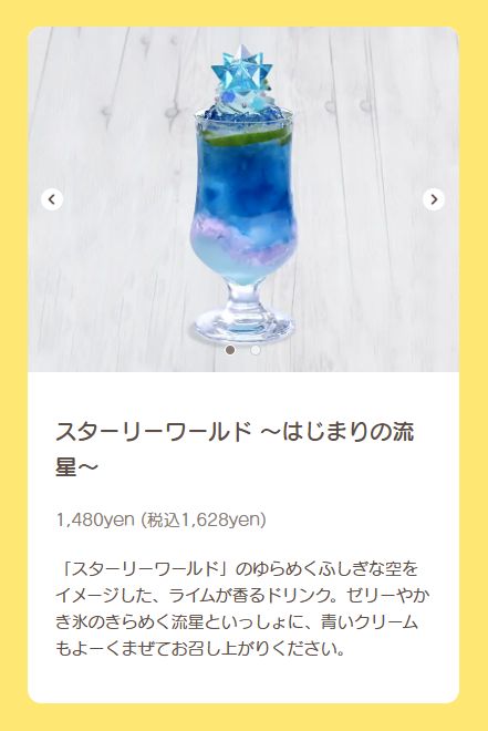 今回は同じく期間限定メニューの「スターリーワールド ~はじまりの流星~」と一緒に注文してみました。スターリーワールド繋がりで、並べて撮影するのに相応しい組み合わせです。