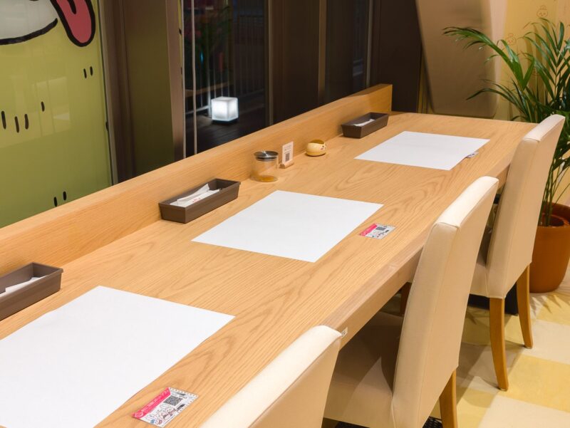 1席に1つずつ、テーブルにランチョンマット(A3サイズ)が敷かれています。