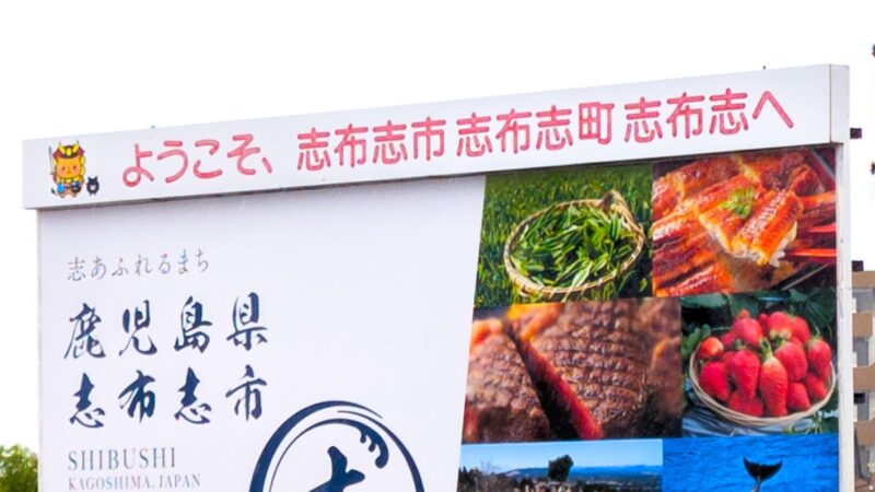 「ようこそ、志布志市志布志町志布志へ」の看板にも志武士ししまる。