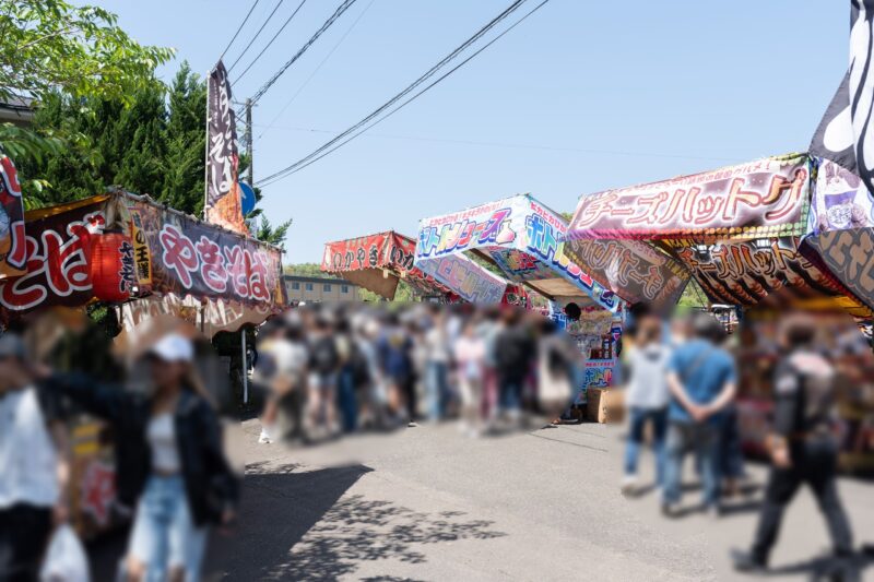 目的地へ近づくに連れて、出店の数も増えてきます。出店は前夜祭から営業。