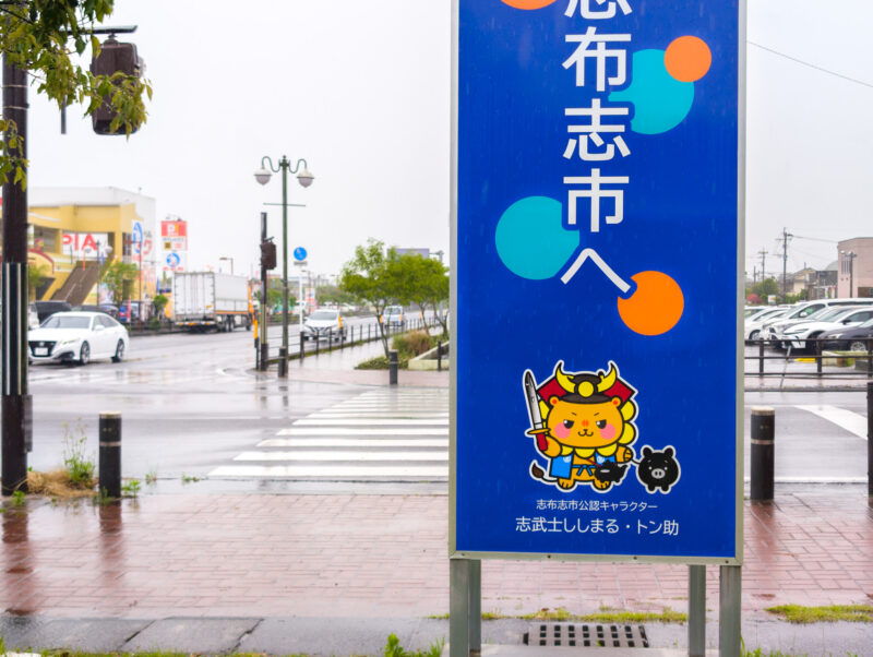 志布志市を訪問して気づいたのは、志武士ししまるが至る所に登場すること。